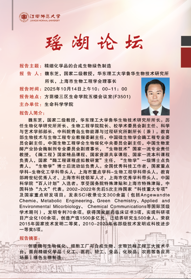 学术报告预告:精细化学品的合成生物绿色制造